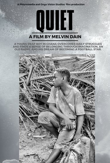 Quiet" follows a young deaf boy in Ghana as he overcomes daily challenges through imagination and determination. Dreaming of being a soccer star and finding joy in an old radio, his world changes after a tragic accident leads him to a school for the deaf. There, he learns sign language and finds a sense of belonging on the soccer field.